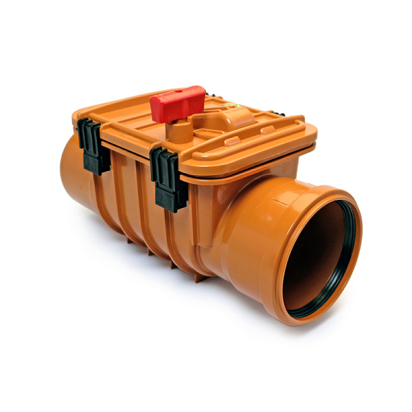 Обратный клапан или затвор  применяется для предотвращения подъема воды до уровня канализационного колодца (до уровня земли) в случае засора канализационной системы здания.