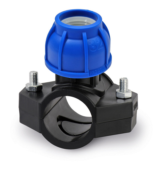 Компрессионные фитинги для ПЭ труб от интернет-магазина «Про Аква» по размеру - Седло с муфтой pro aqua 63x40. Перед покупкой ознакомьтесь с подробными характеристиками товара.
