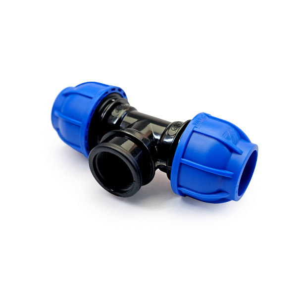 Компрессионный тройник с внутренней резьбой  применяется для быстрого разветвление со стального трубопровода на две полиэтиленовых трубы, что часто необходимо в системах полива,  или смонтировать необходимый узел трубопровода.