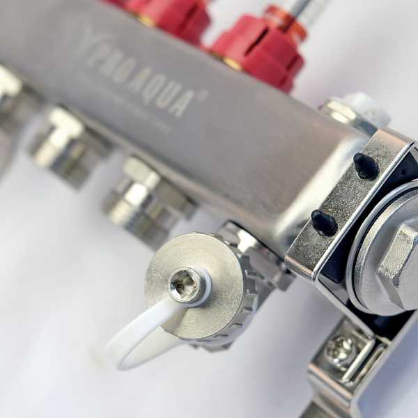 Новые коллекторные блоки PRO AQUA – это эффективное решение для организации системы отопления и теплого пола. Блоки произведены из нержавеющей стали марки AISI 304, которая является одним из самых экологичных материалов. Толщина стенки коллекторного блока PRO AQUA увеличена и составляет 1,6 мм, стандарт 1,5 мм. Коллекторные блоки имеют увеличенное проходное сечение 40x40.7 мм (16.28 см2) и обладают повышенной пропускной способностью.